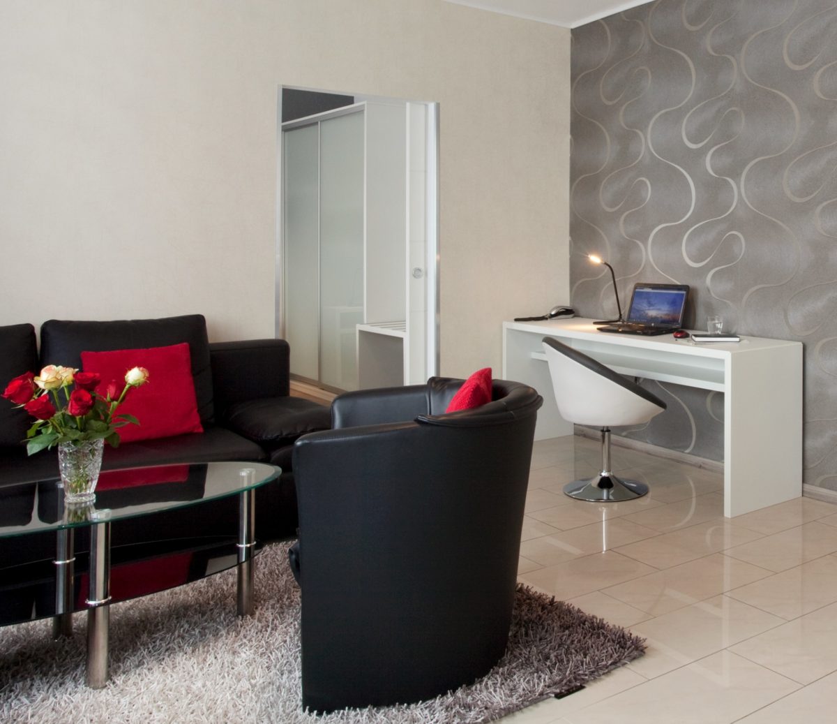 モダンなバスルーム(トイレ/浴槽/シャワー付き)、無線 LAN(無料)、液晶テレビ(衛星放送対応)、最新テレビ雑誌、ミニバー、金庫が完備されています。